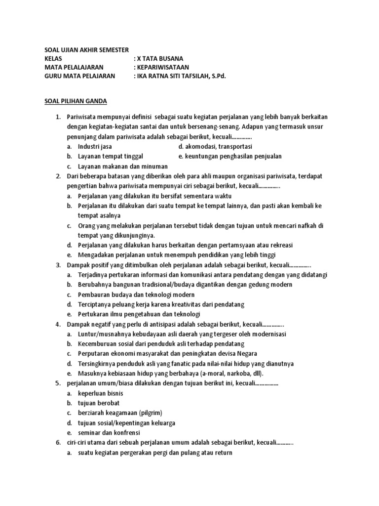 Soal Uas Teori Kejuruan Akomodasi Perhotelan 2012 2013 Smk Pariwisat from image.slidesharecdn.com Check spelling or type a new query. Maybe you would like to learn more about one of these? We did not find results for: Soal uas komunikasi industri pariwisata kelas 10.